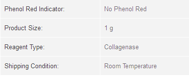 胶原酶是一种蛋白酶,能够特异性地结合Pro-X-Glyc-Pro序列中中性氨基酸 (x) 和甘氨酸之间的肽键。该序列高频率地存在于胶原中。胶原酶是唯一一种可以降解广泛存在于结缔组织中具有三股螺旋的天然胶原纤维的蛋白酶。
